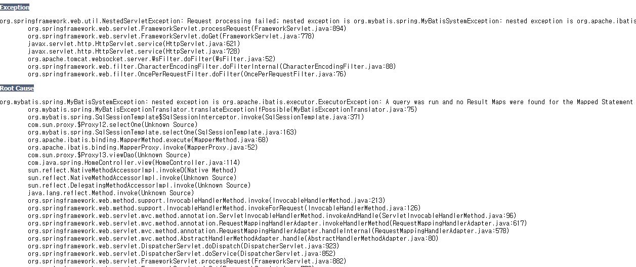 xml 매핑할 때 resultType 를 안해주어서 발생했다.